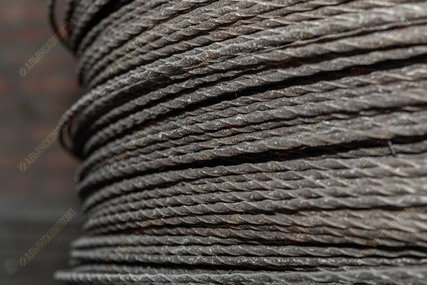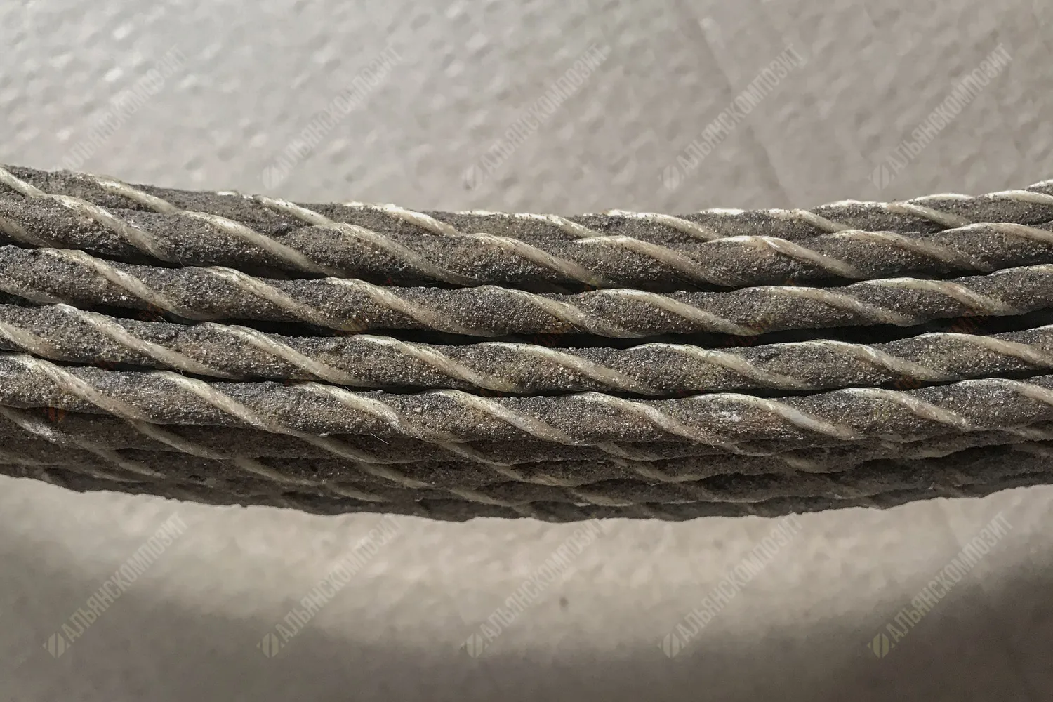 Материал стержня: стеклоровинг. Для уплотнения стеклянных волокон в стержне арматуры жгут стеклопластика перетянут нитью.