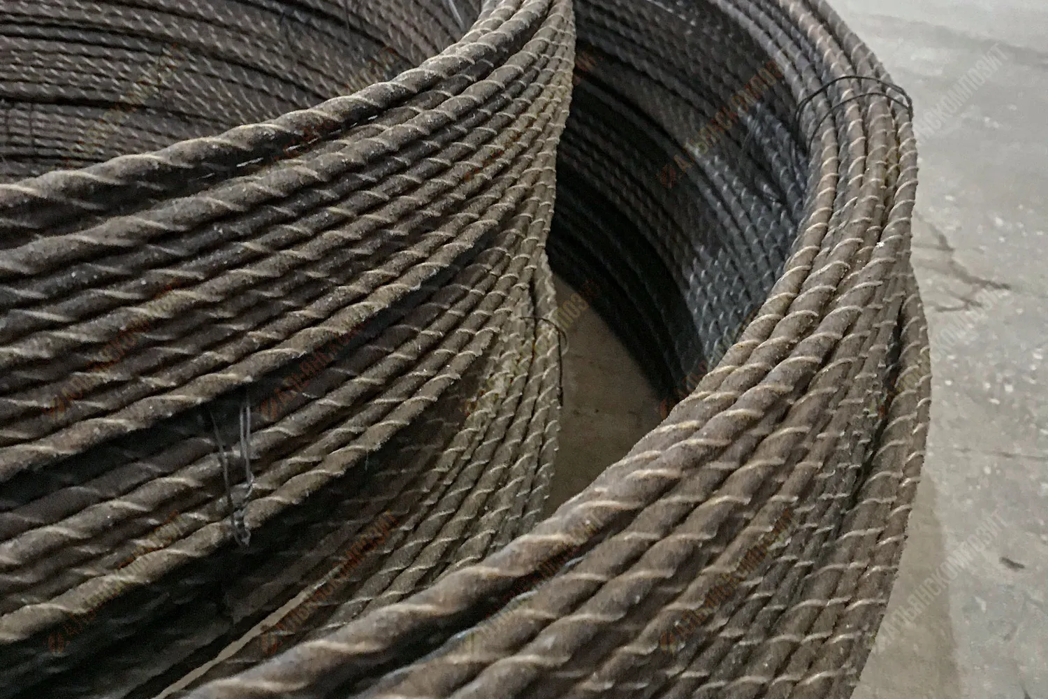 Материал стержня: стеклоровинг. Для уплотнения стеклянных волокон в стержне арматуры жгут стеклопластика перетянут нитью.