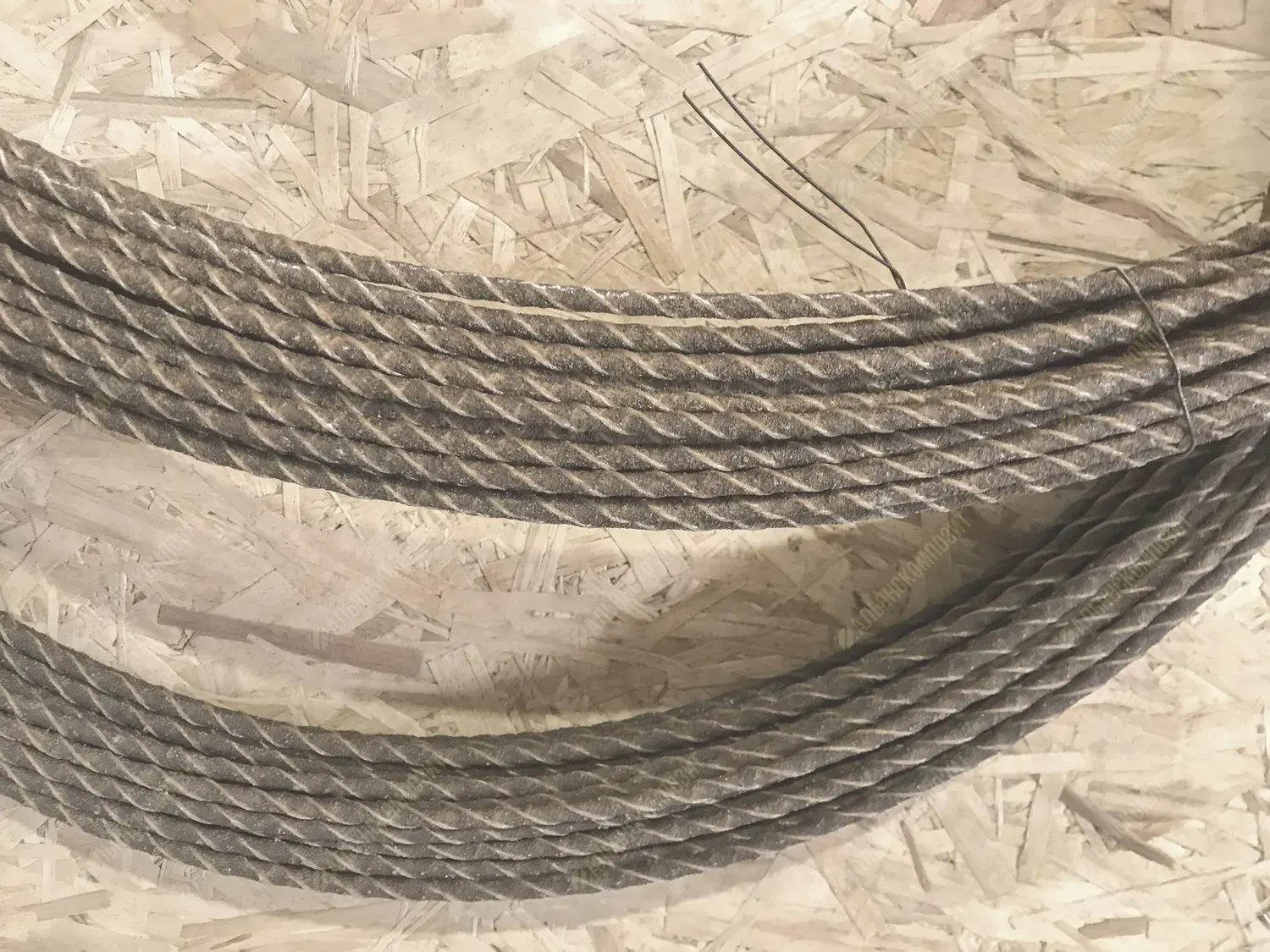 Материал стержня: стеклоровинг. Для уплотнения стеклянных волокон в стержне арматуры жгут стеклопластика перетянут нитью.
