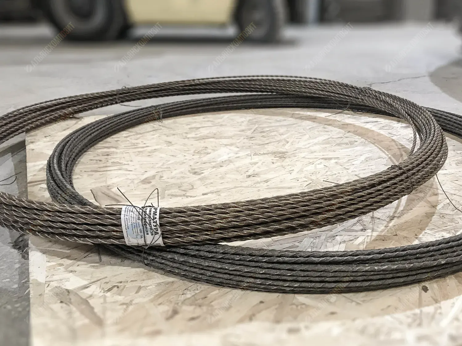 Материал стержня: стеклоровинг. Для уплотнения стеклянных волокон в стержне арматуры жгут стеклопластика перетянут нитью.