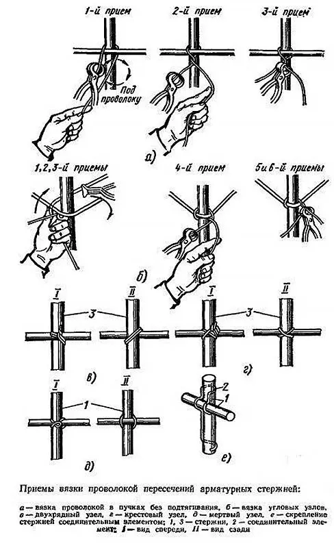 На сегодняшний день этот замечательный метод является самым популярным и дешевым. Для выполнения процедуры можно использовать вязальный крючок, но можно обойтись и руками. Надо сказать, что вязальная проволока довольно удобнаипластична. При перекручивании, сгибании, а также разгибании она не ломается. Диаметры могут составлять до 1,2 мм. Как правило, ее продают бухтами и килограммами. Широко используют со всеми остальными типами вязальных крюков, не считая, конечно, вязальных пистолетов, потому что при их участии работы уже ведутся по-другому.