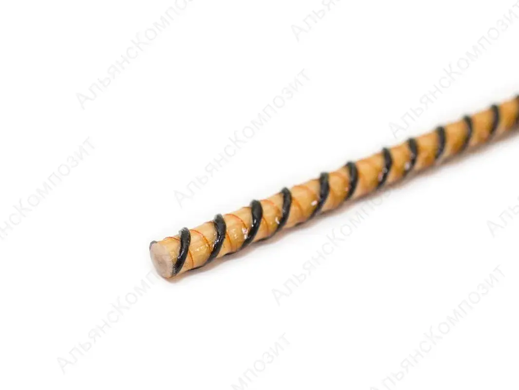 • Арматура имеет внешнее ребро из волокна на основе базальта. Дополнительное внешнее ребро придает стержню арматуры периодический профиль, которое и увеличивает площадь поверхности арматуры, что повышает сцепление стержня с бетоном.